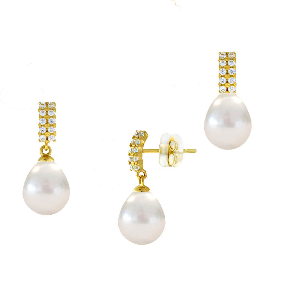 • Ένα φανταστικό ζευγάρι σκουλαρίκια με 2 εντυπωσιακά λευκά μαργαριτάρια Fresh Water Pearl, άριστης ποιότητας σε σχήμα Drop (σταγόνα), διαμέτρου 8,5 x 11 χιλιοστών.