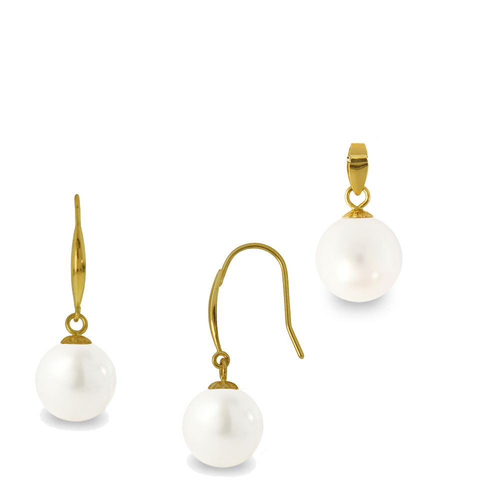 Σετ σε χρυσή βάση Κ14 μενταγιόν και χρυσά Κ14 σκουλαρίκια με λευκά μαργαριτάρια - M123958