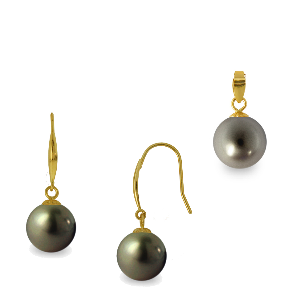 Σετ σε χρυσή βάση Κ14 μενταγιόν και χρυσά Κ14 σκουλαρίκια με μαύρα μαργαριτάρια - M123958B