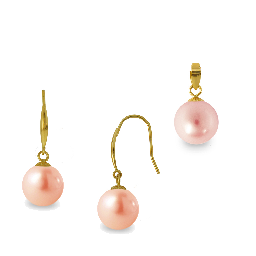 Σετ σε χρυσή βάση Κ14 μενταγιόν και χρυσά Κ14 σκουλαρίκια με σομόν μαργαριτάρια - M123958S