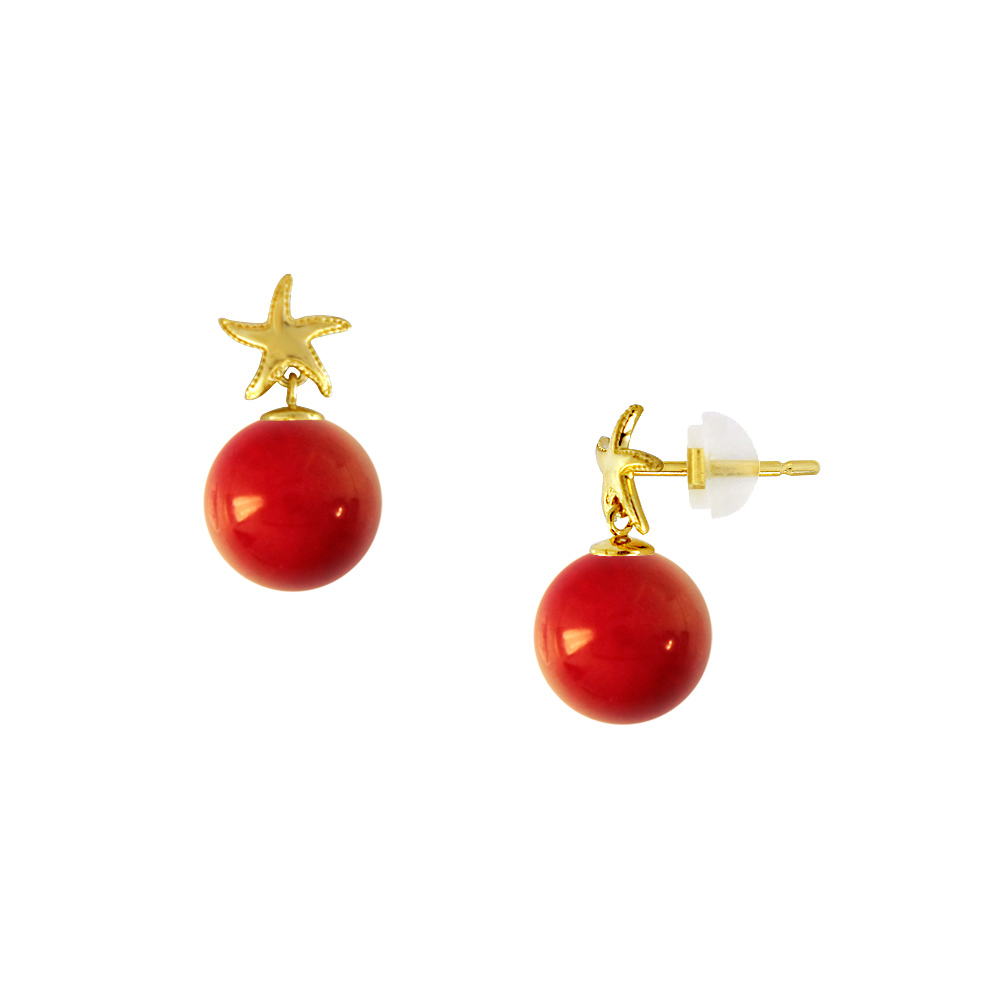 Σκουλαρίκια σε Κ14 χρυσή βάση και κοράλλι ή λάπις - M123225