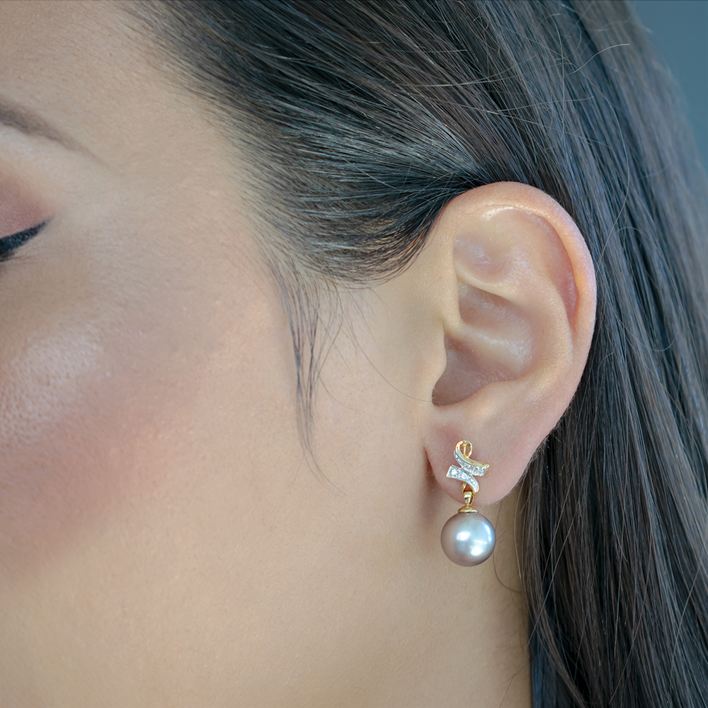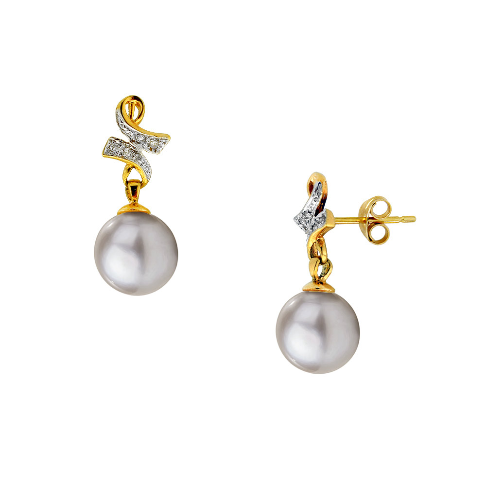 Σκουλαρίκια με Grey South Sea μαργαριτάρια και διαμάντια σε χρυσή βάση Κ18 - M300193