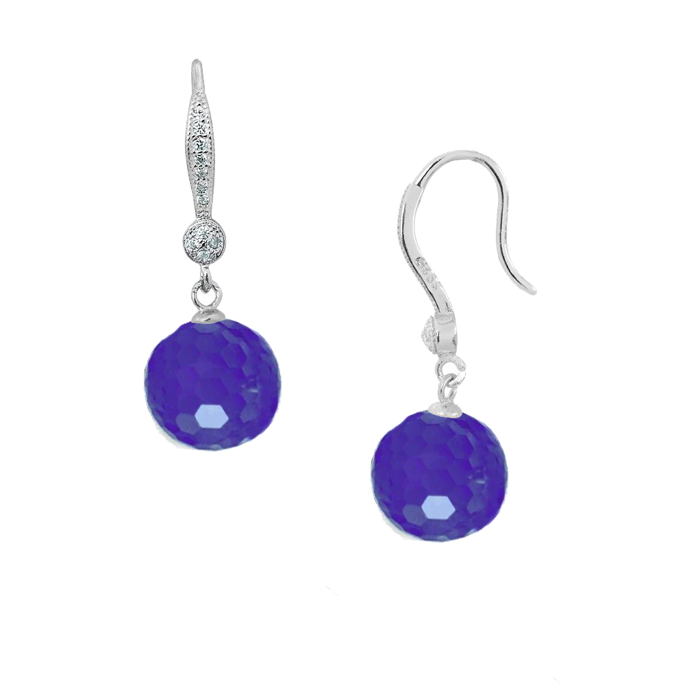• Ένα φανταστικό ζευγάρι κρεμαστά σκουλαρίκια με 2 εντυπωσιακούς ημιπολίτιμους λίθους Amethyst Cubic Zirgon διαμέτρου 8 χιλιοστών.