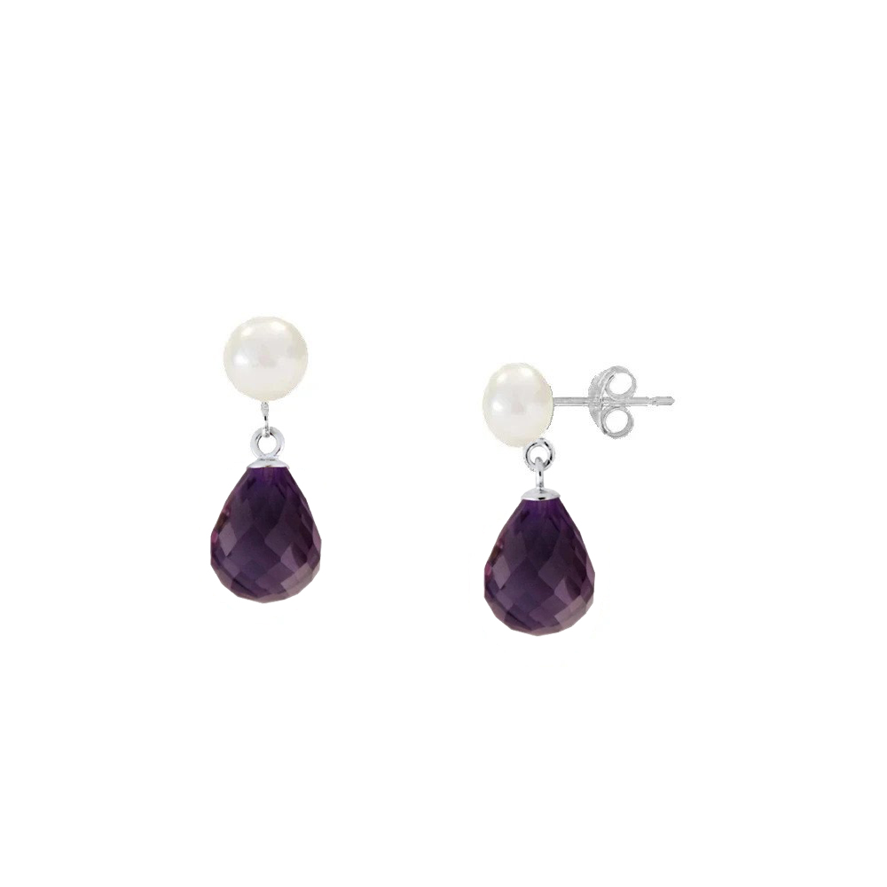 • Ένα υπέροχο ζευγάρι κρεμαστά σκουλαρίκια με 2 εντυπωσιακούς φασεταρισμένους ημιπολύτιμους λίθους Amethyst Cubic Zircon σε σχήμα Drop (σταγόνα), διαμέτρου 7 x 10 χιλιοστών.