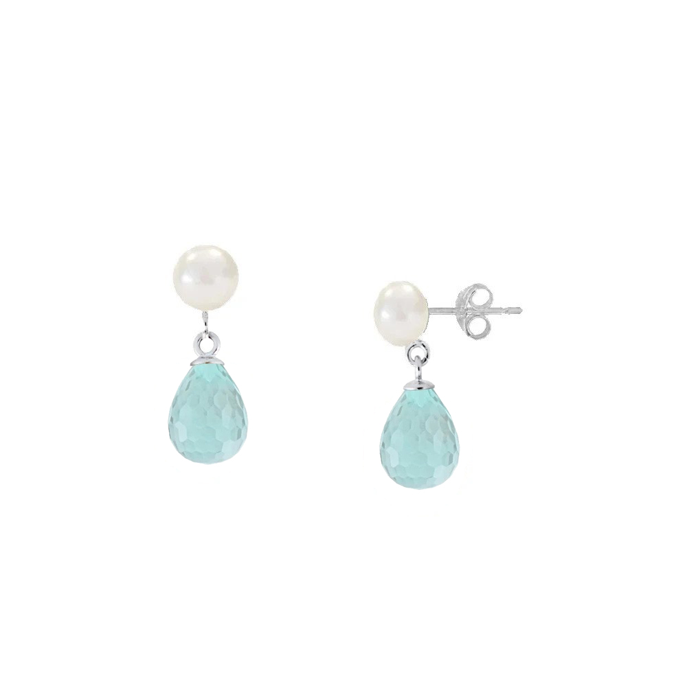 • Ένα υπέροχο ζευγάρι κρεμαστά σκουλαρίκια με 2 εντυπωσιακούς φασεταρισμένους ημιπολύτιμους λίθους Aqua Cubic Zircon σε σχήμα Drop (σταγόνα), διαμέτρου 7 x 10 χιλιοστών.