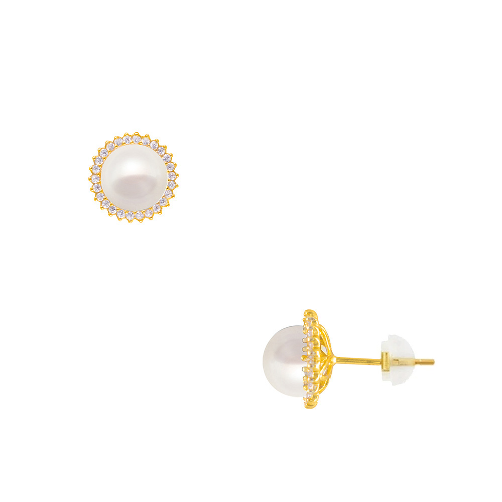 Σκουλαρίκια 925 ασημένια επιχρυσωμένο με λευκά μαργαριτάρια και ζιργκόν - S126271