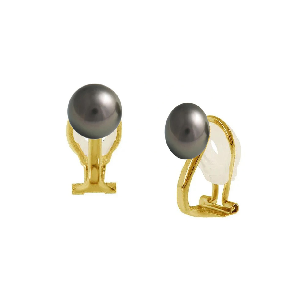 Σκουλαρίκια σε 925 ασημένια επιχρυσωμένη βάση με μαύρα μαργαριτάρια - G123447B