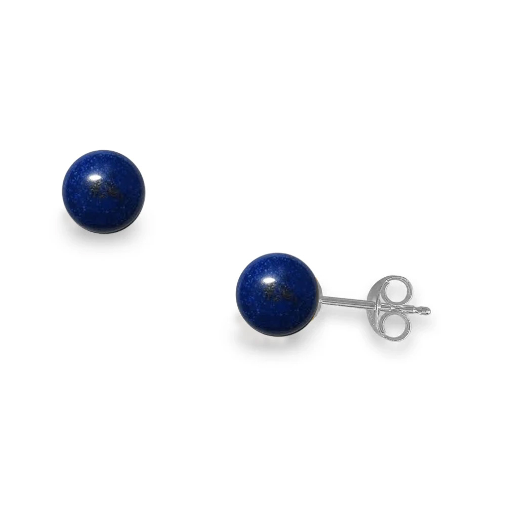 • Ένα υπέροχο ζευγάρι καρφωτά σκουλαρίκια με στρόγγυλο ημιπολύτιμο λίθο λάπις διαμέτρου 8 χιλιοστών.