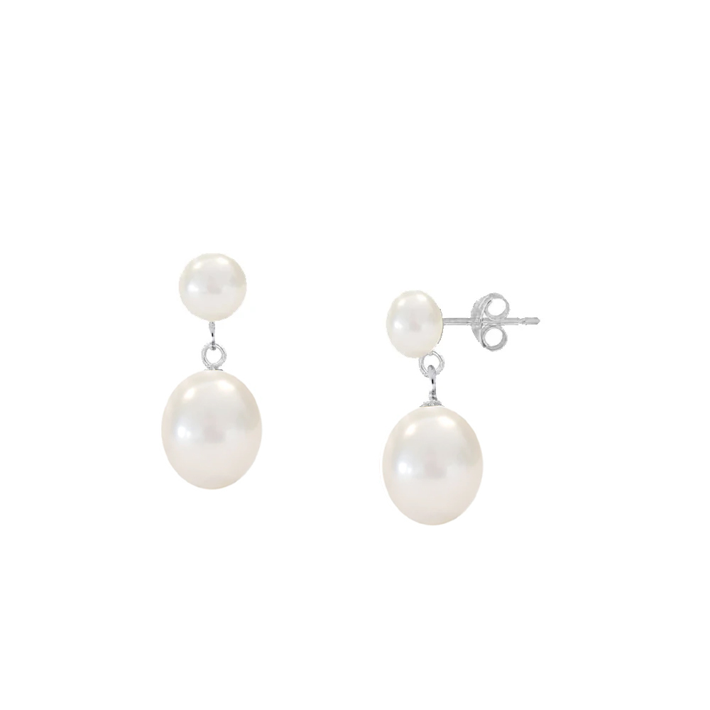 • Ένα υπέροχο ζευγάρι κρεμαστά σκουλαρίκια με λευκά μαργαριτάρια Fresh Water Pearl διαμέτρου 5,5-6 χιλιοστών σε σχήμα button και Fresh Water Pearl διαμέτρου 8,5x11 χιλιοστών σε σχήμα Long.