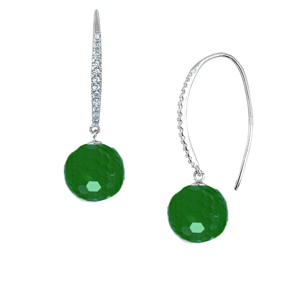 • Ένα φανταστικό ζευγάρι κρεμαστά σκουλαρίκια με 2 εντυπωσιακούς ημιπολύτιμους λίθους  Green Agate Cubic Zirgon διαμέτρου 8 χιλιοστών.