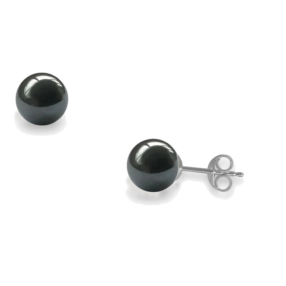 • Ένα υπέροχο ζευγάρι καρφωτά σκουλαρίκια με στρογγυλό ημιπολύτιμο λίθο Αιματίτη διαμέτρου 8 χιλιοστών.