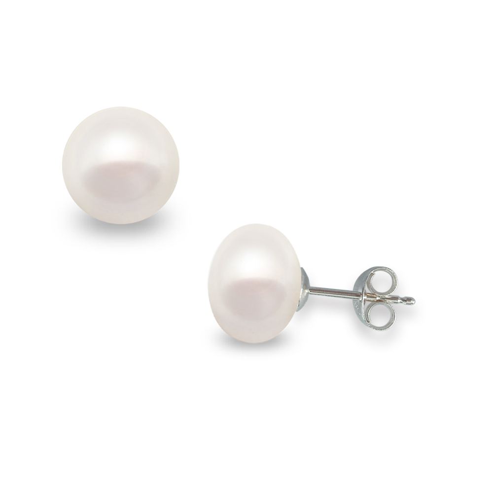 • Ένα υπέροχο ζευγάρι σκουλαρίκια με λευκά μαργαριτάρια Fresh Water Pearl, άριστης ποιότητας σε σχήμα Button (κουμπί), διαμέτρου 10,5 - 11 χιλιοστών.
