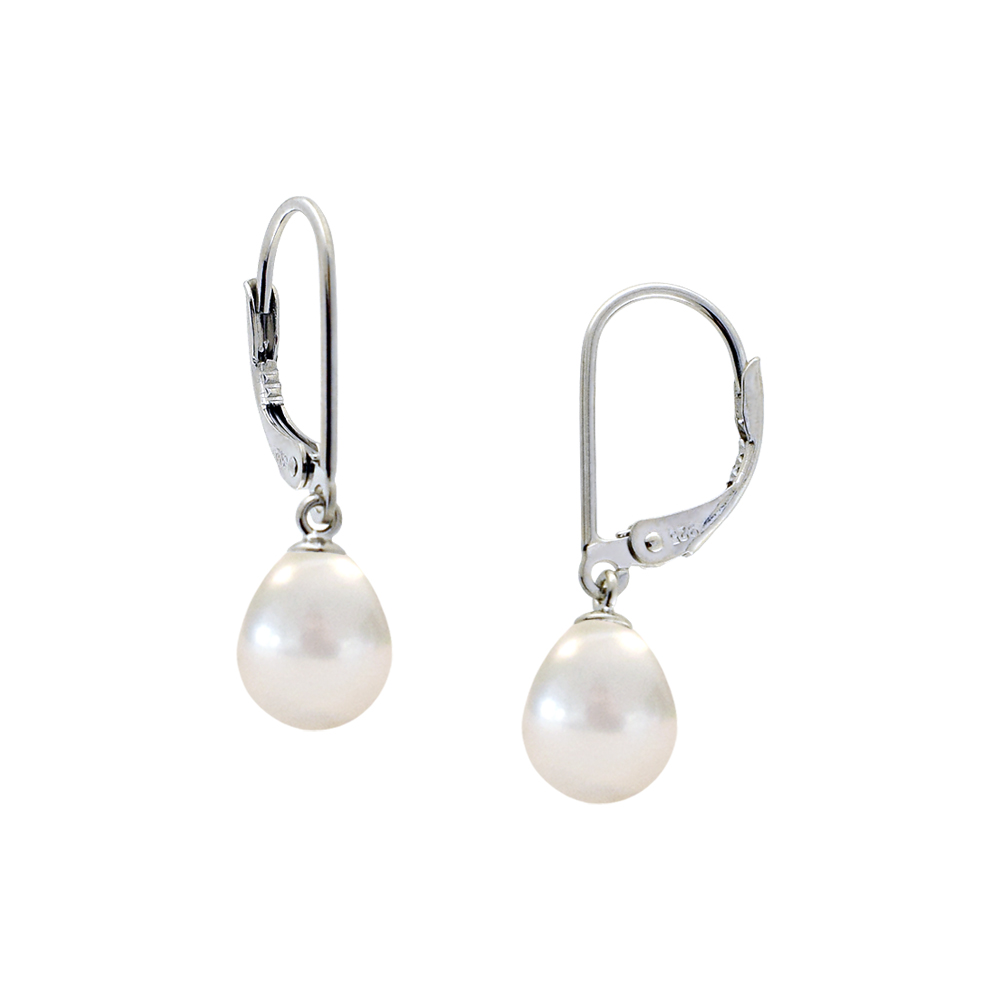 • Ένα φανταστικό ζευγάρι κρεμαστά σκουλαρίκια με 2 εντυπωσιακά λευκά μαργαριτάρια Fresh Water Pearl, άριστης ποιότητας σε σχήμα Drop (σταγόνα), διαμέτρου 8,5 x 11 χιλιοστών.