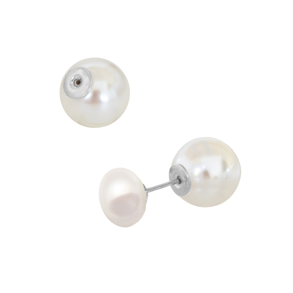 • Ένα υπέροχο ζευγάρι σκουλαρίκια με λευκά μαργαριτάρια Fresh Water Pearl άριστης ποιότητας σε σχήμα Button (κουμπί), διαμέτρου 8,5 - 9 χιλιοστών.