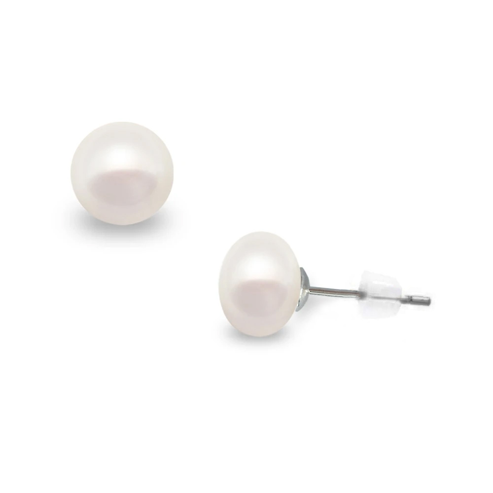 • Ένα υπέροχο ζευγάρι σκουλαρίκια με λευκά μαργαριτάρια Fresh Water Pearl, άριστης ποιότητας σε σχήμα Button (κουμπί), διαμέτρου 9,5 - 10 χιλιοστών.