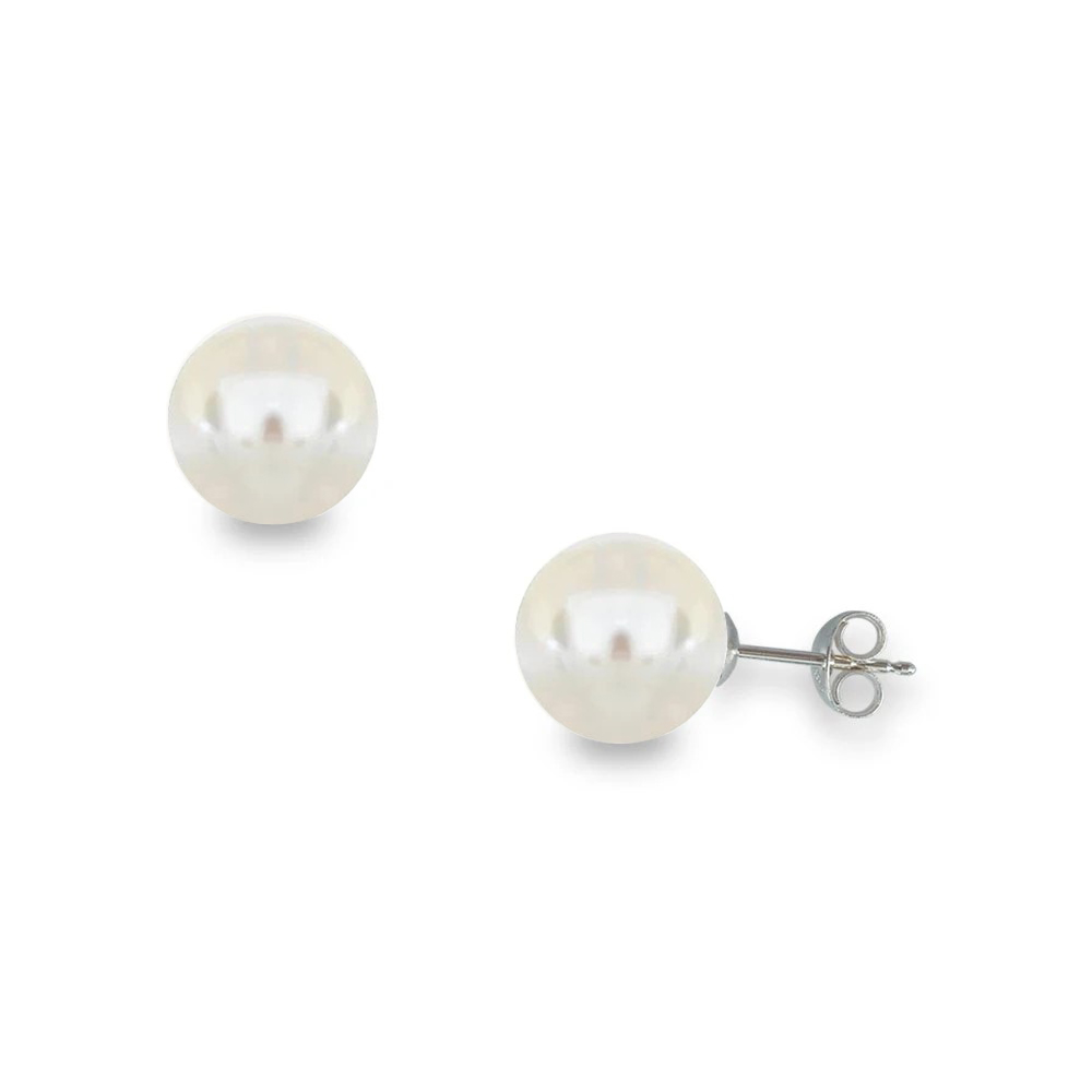 • Ένα υπέροχο ζευγάρι σκουλαρίκια με ολοστρόγγυλα λευκά Shell Pearl διαμέτρου 12, χιλιοστών.