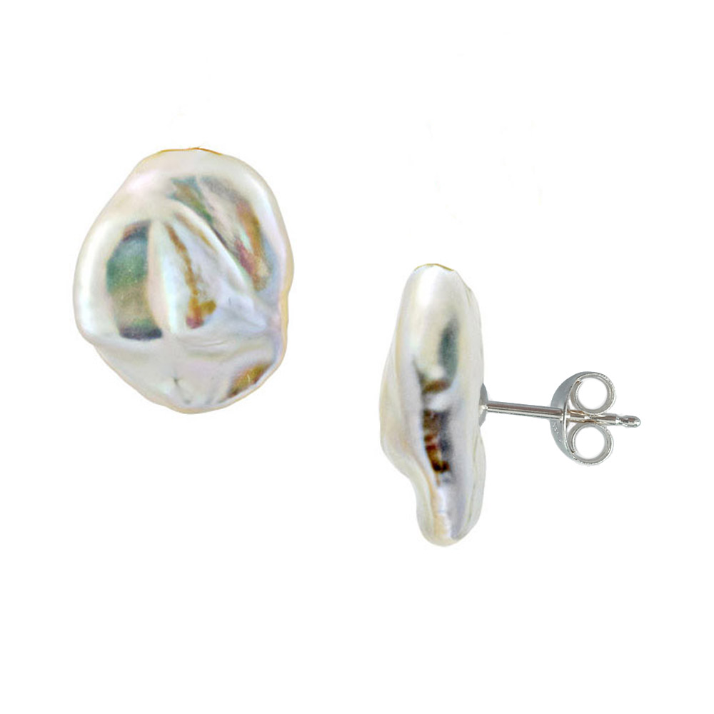 • Ένα φανταστικό ζευγάρι καρφωτά σκουλαρίκια με 2 εντυπωσιακά λευκά μαργαριτάρια Biwa Fresh Water Pearl, άριστης ποιότητας σε σχήμα Baroque, διαμέτρου 12,5 x 14,0 χιλιοστών.