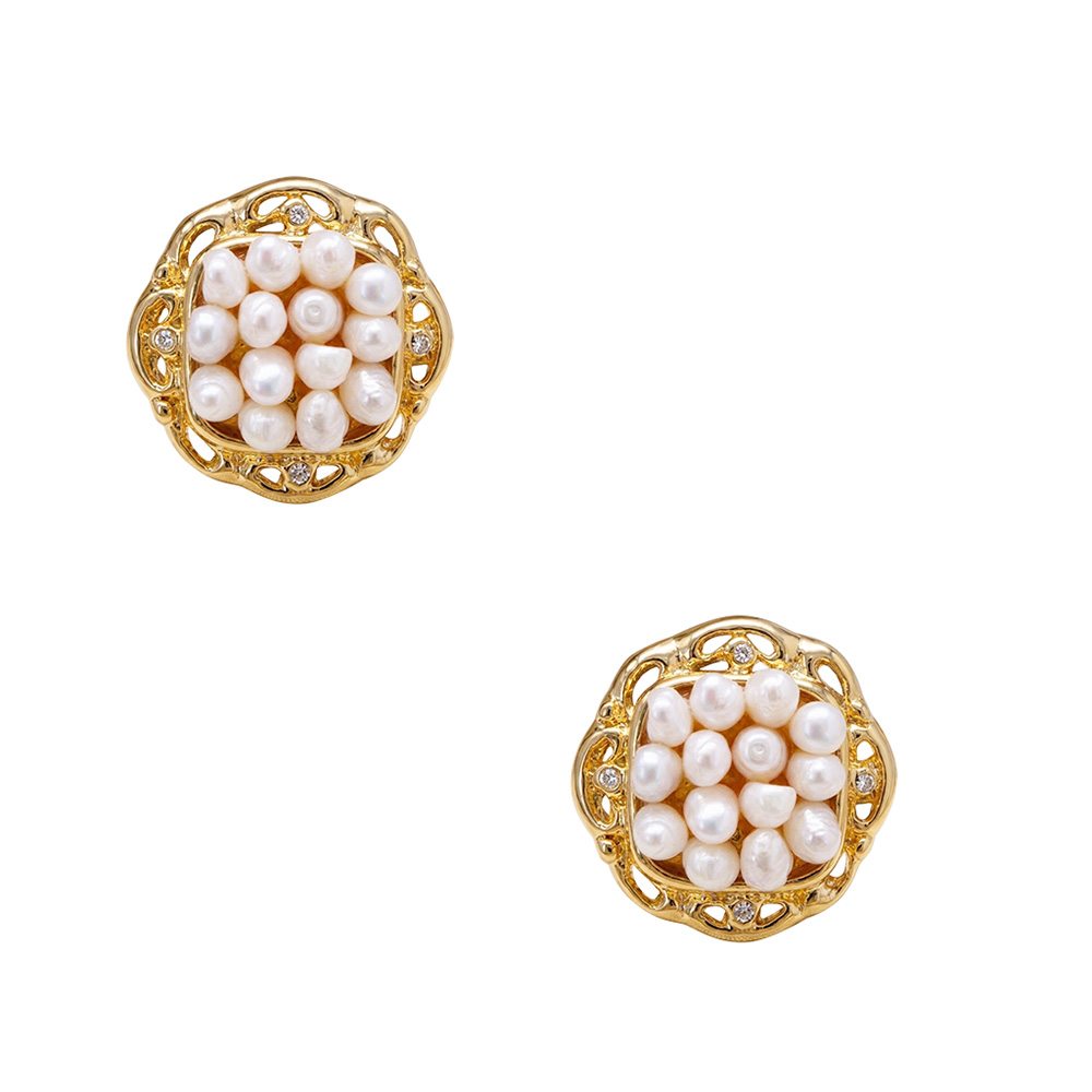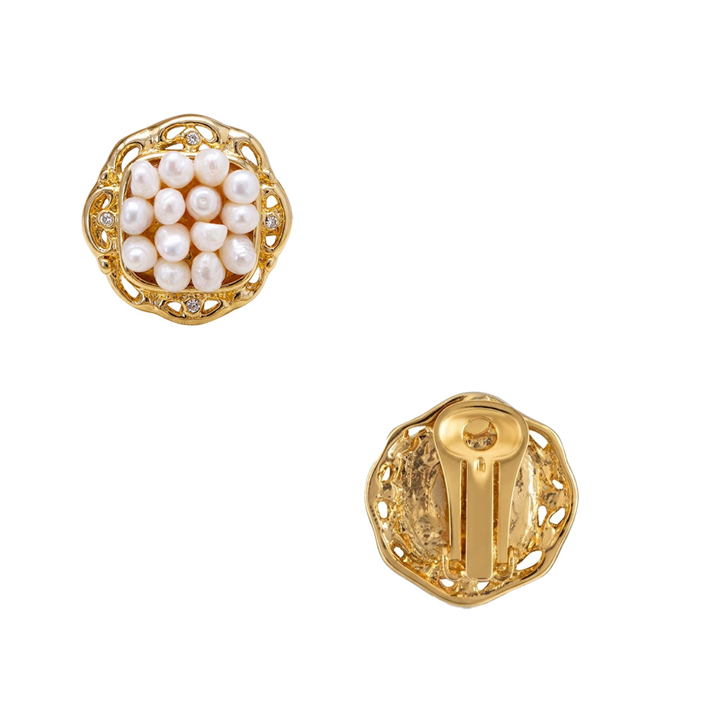 Σκουλαρίκια με λευκά μαργαριτάρια, ζιργκόν και βάση από ατσάλι με κλιπ - F1252312