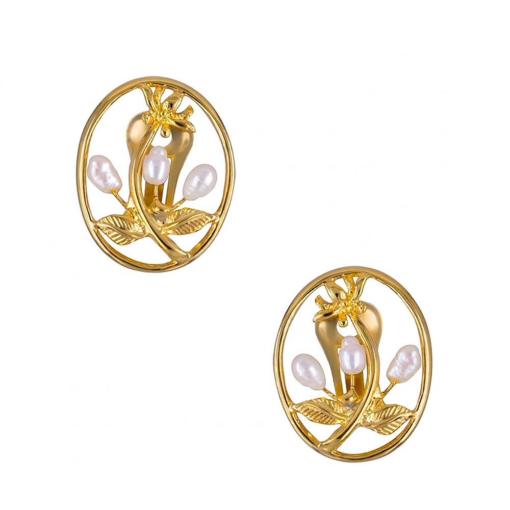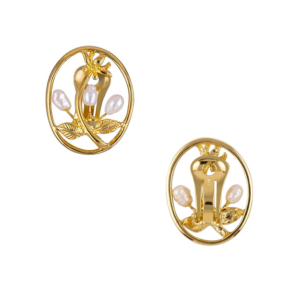 Σκουλαρίκια με λευκά μαργαριτάρια και βάση από ατσάλι με κλιπ - F1252310