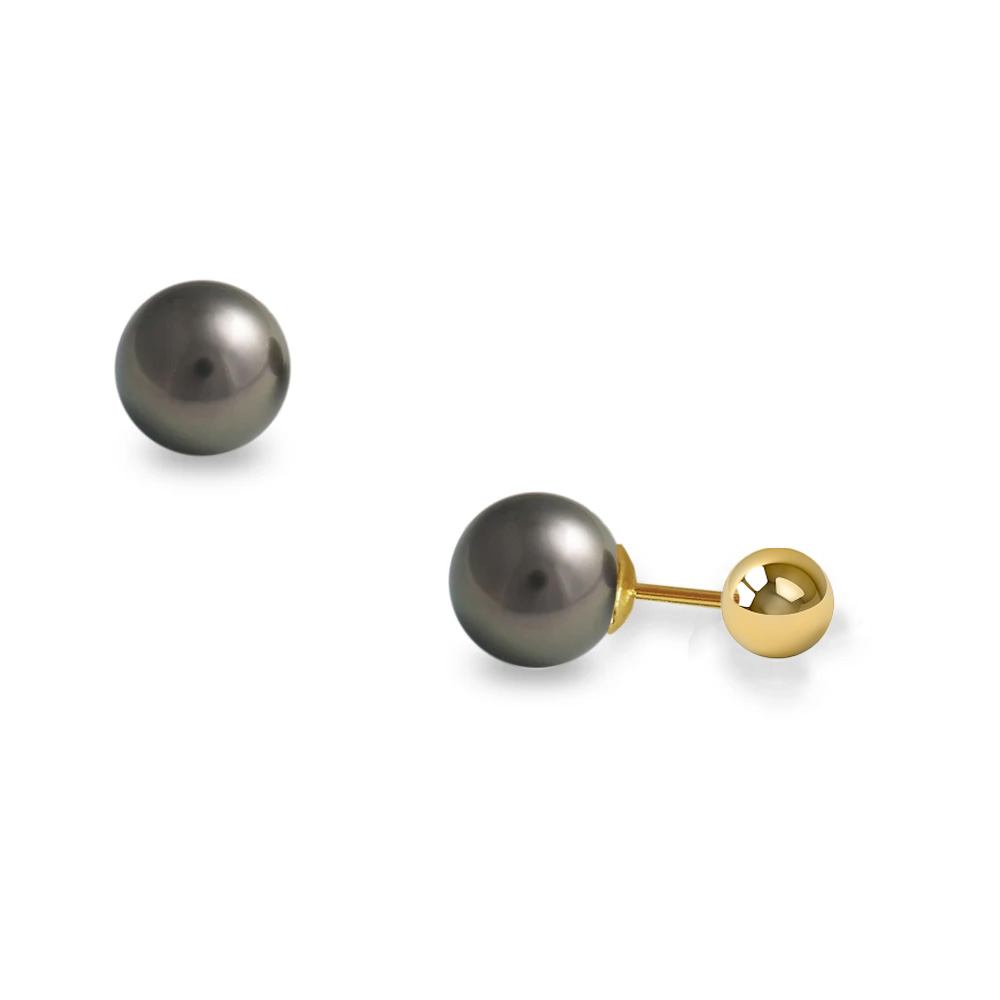 • Ένα υπέροχο ζευγάρι καρφωτά σκουλαρίκια με μαύρα ολοστρόγγυλα μαργαριτάρια Q.T.V. Akoya διαμέτρου 7,5-8 χιλιοστών με εξαιρετικό γυάλισμα.