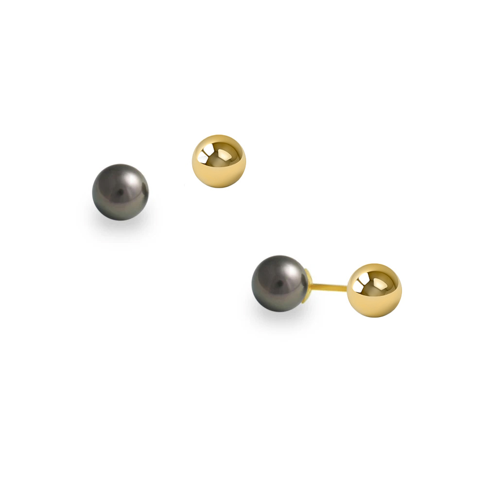 Νέο Σκουλαρίκια Κ14 χρυσά διπλής όψης με μαύρα Q.T.V. Akoya - G126535B