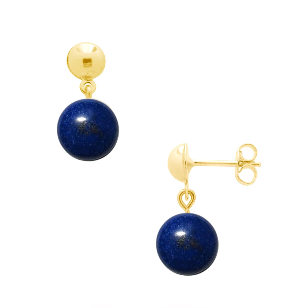 • Ένα υπέροχο ζευγάρι κρεμαστά σκουλαρίκια με στρόγγυλο ημιπολύτιμο λίθο λάπις λάζουλι διαμέτρου 10 χιλιοστών με ιδιαίτερα σχέδια.