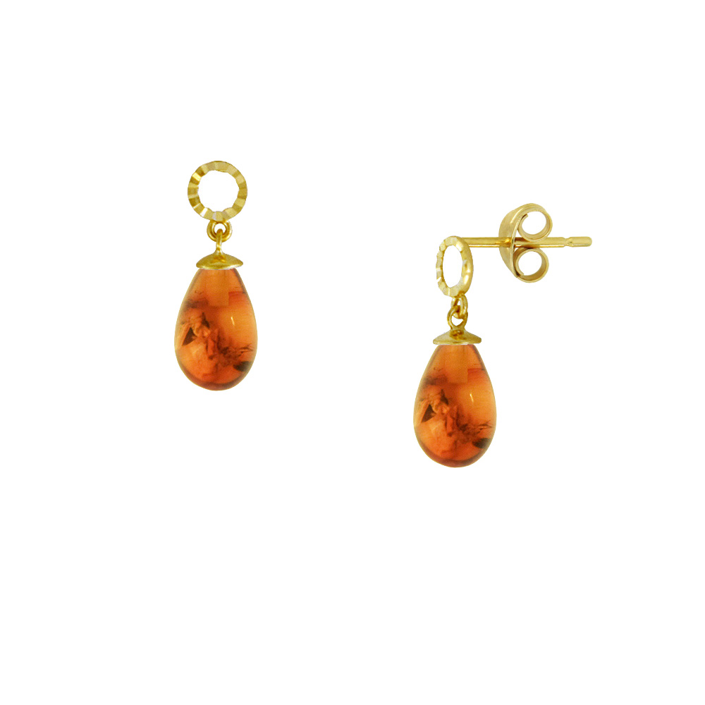 Σκουλαρίκια σε Κ14 χρυσή βάση και Κεχριμπάρι - M123219AB