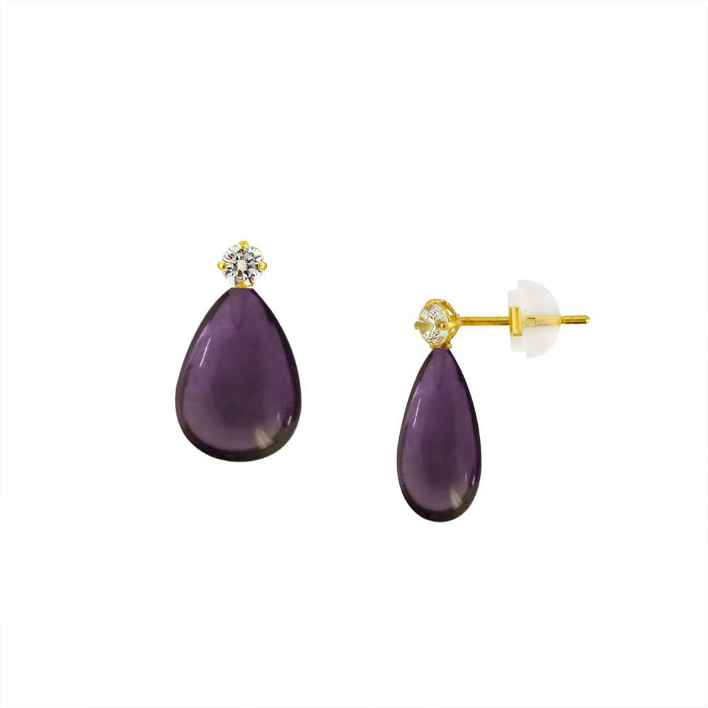 • Ένα φανταστικό ζευγάρι σκουλαρίκια με 2 ημιπολύτιμους λίθους Amethyst Cubic Zircon σε σχήμα Drop (σταγόνα), διαμέτρου 9 x 12,5 χιλιοστών.