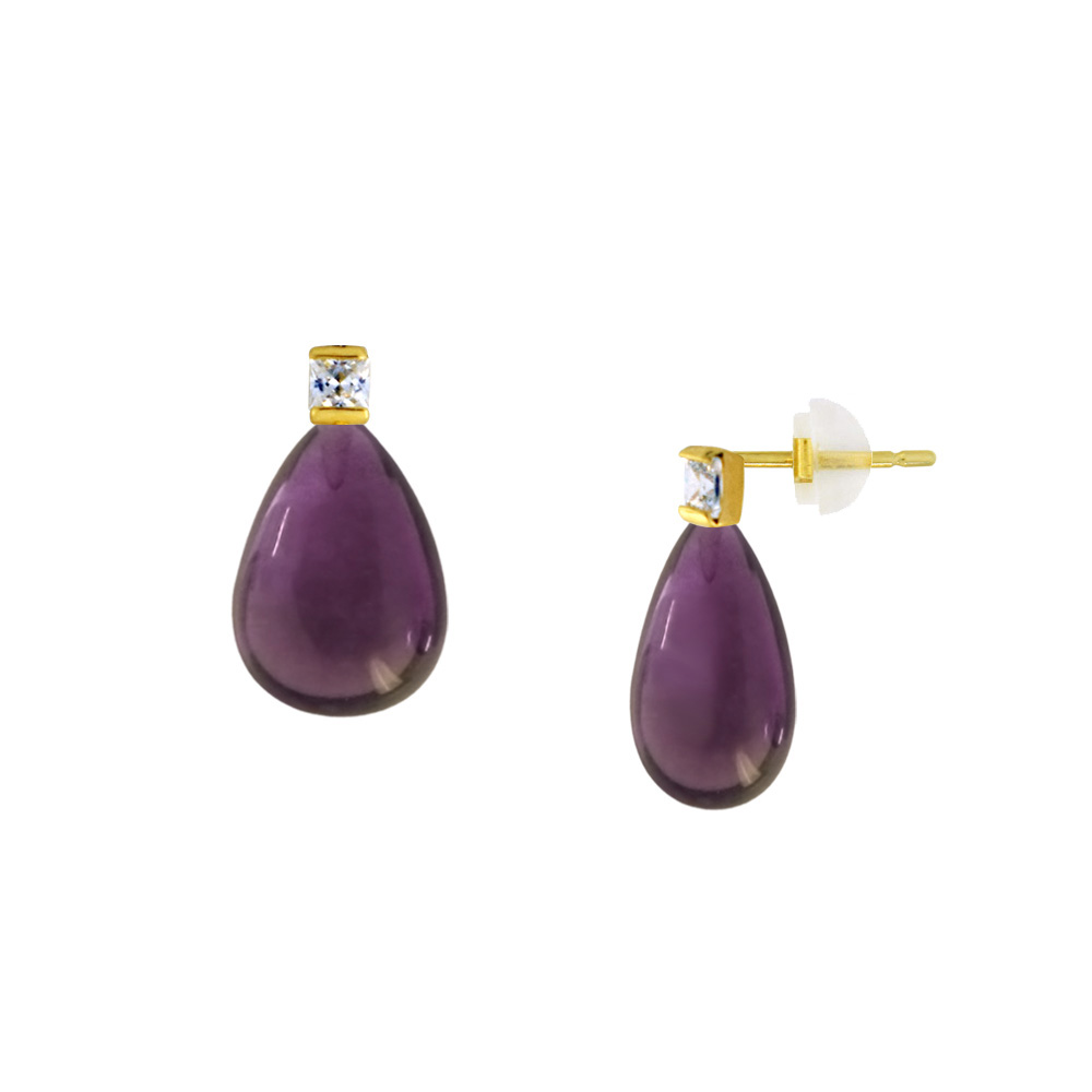 • Ένα φανταστικό ζευγάρι σκουλαρίκια με 2 ημιπολύτιμους λίθους Amethyst CΖ σε σχήμα Drop, διαμέτρου 9 x 12,5 χιλιοστών.