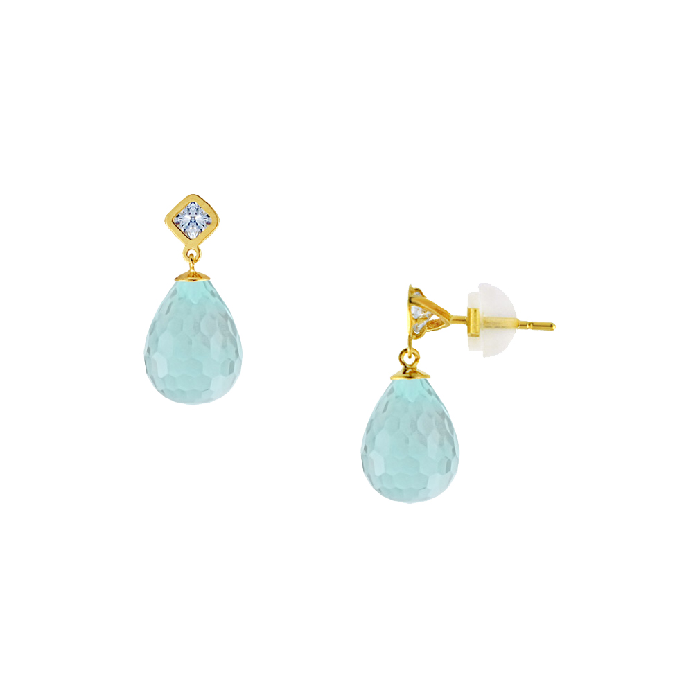 • Ένα φανταστικό ζευγάρι σκουλαρίκια με ημιπολύτιμους λίθους Aqua Cubic Zircon Facet σε σχήμα Drop (σταγόνα), διαμέτρου 7 x 10 χιλιοστών.