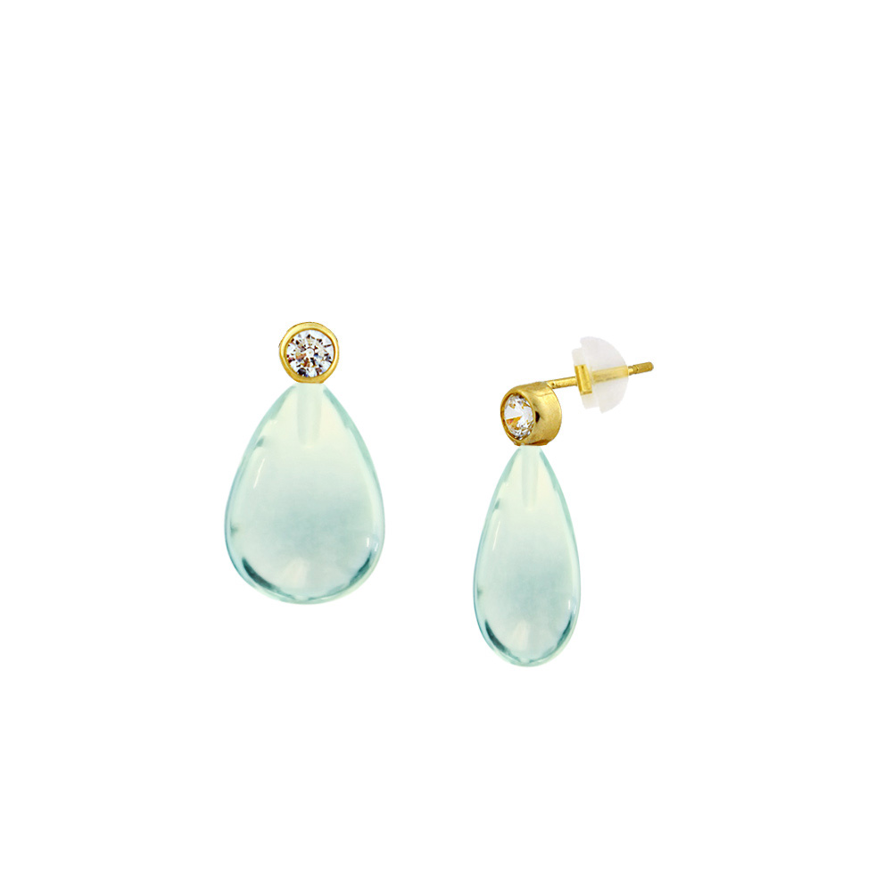 • Ένα φανταστικό ζευγάρι σκουλαρίκια με 2 ημιπολύτιμους λίθους Aqua Cubic Zircon σε σχήμα Drop (σταγόνα), διαμέτρου 9x12,5 χιλιοστών.