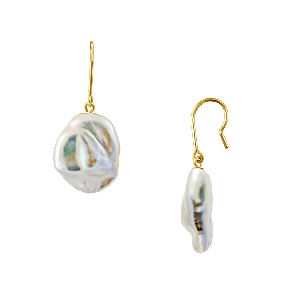 • Ένα φανταστικό ζευγάρι σκουλαρίκια με 2 εντυπωσιακά λευκά μαργαριτάρια Biwa Fresh Water Pearl, άριστης ποιότητας σε σχήμα Baroque, διαμέτρου 12,5 x 14,0 χιλιοστών.