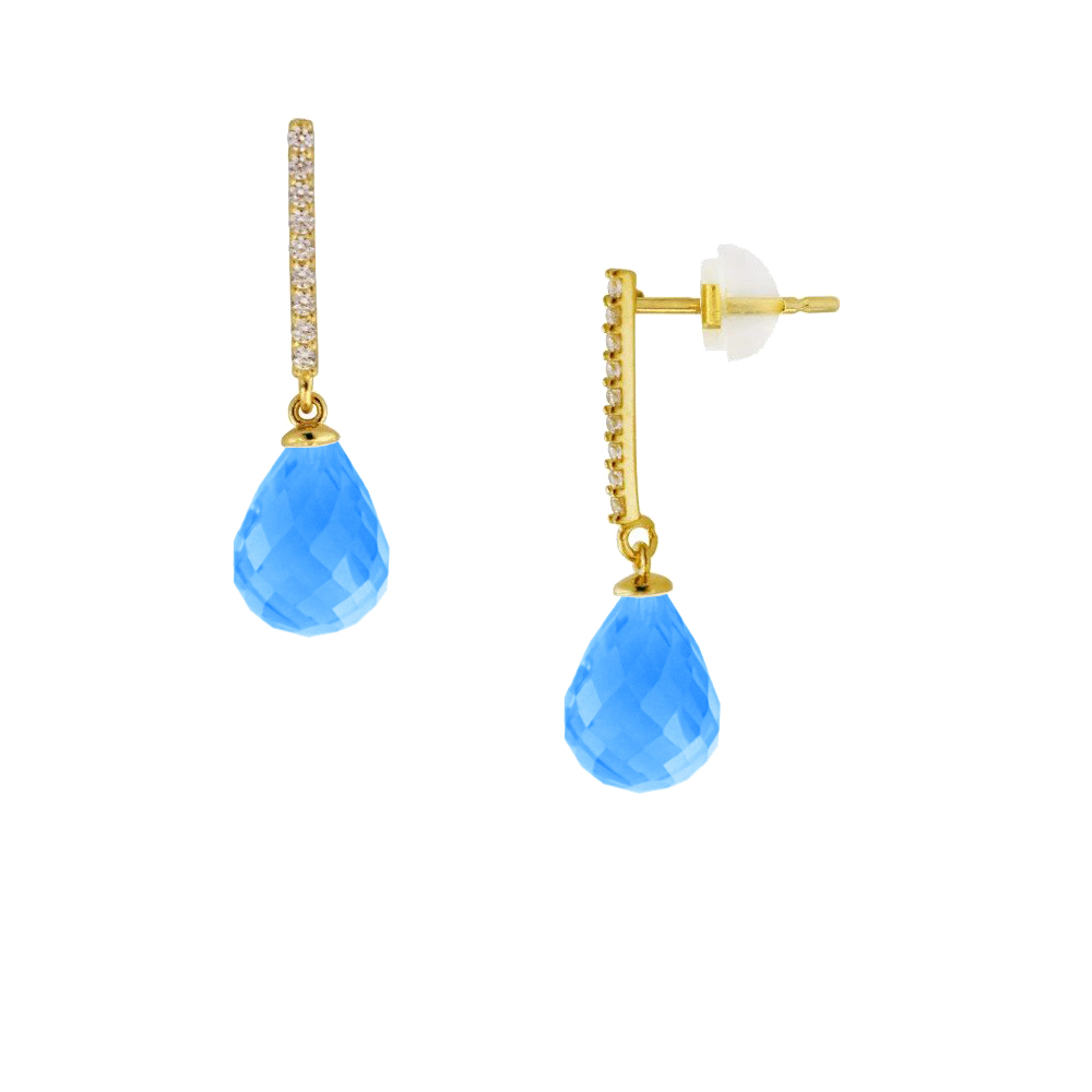 • Ένα φανταστικό ζευγάρι σκουλαρίκια με ημιπολύτιμους λίθους Blue Topaz Cubic Zircon Facet σε σχήμα Drop (σταγόνα), διαμέτρου 7 x 10 χιλιοστών.