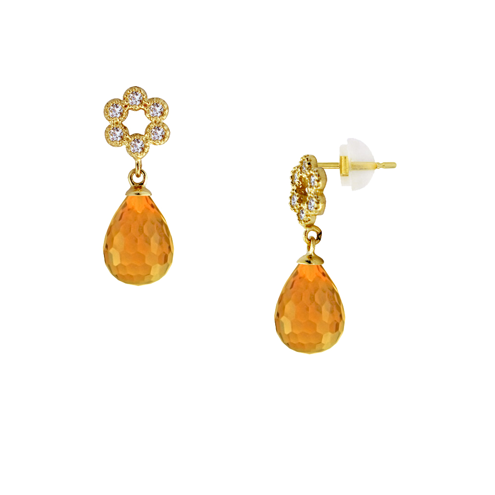 • Ένα φανταστικό ζευγάρι σκουλαρίκια με ημιπολύτιμους λίθους Citrine Cubic Zircon Facet σε σχήμα Drop (σταγόνα), διαμέτρου 7 x 10 χιλιοστών.