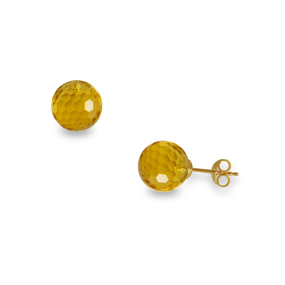 • Ένα υπέροχο ζευγάρι σκουλαρίκια με φασεταρισμένους ημιπολύτιμους λίθους Citrine Cubic Zircon διαμέτρου 10 χιλιοστών.