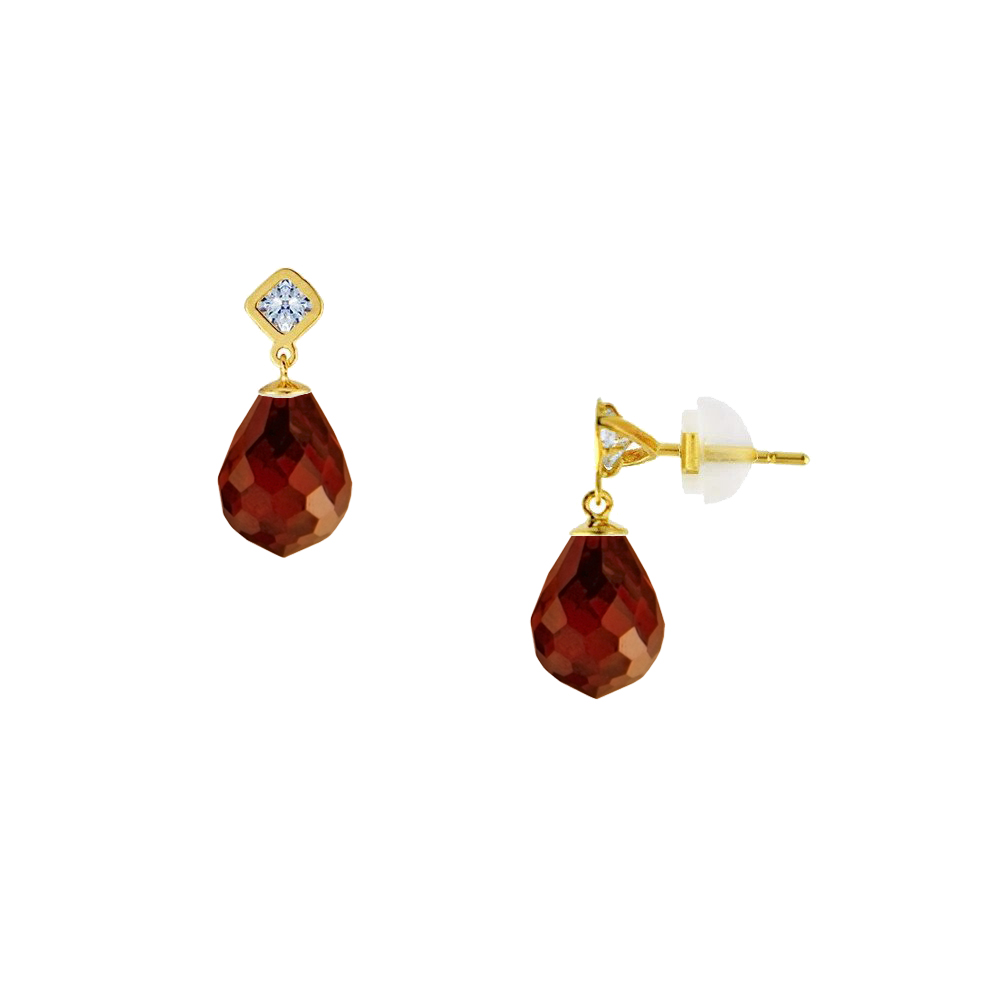 • Ένα φανταστικό ζευγάρι σκουλαρίκια με ημιπολύτιμους λίθους Garnet Cubic Zircon Facet σε σχήμα Drop (σταγόνα), διαμέτρου 7 x 10 χιλιοστών.