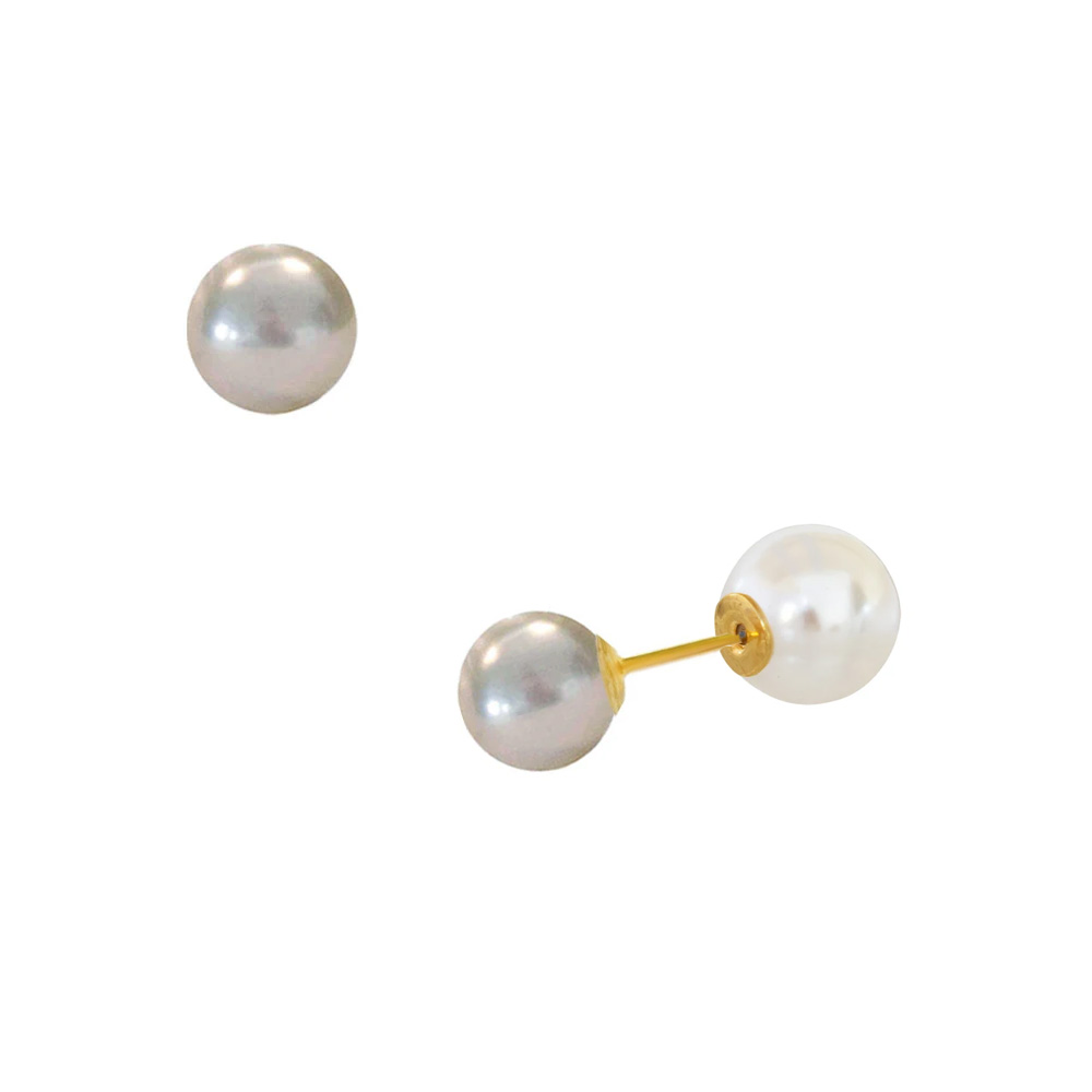• Ένα υπέροχο ζευγάρι σκουλαρίκια διπλής όψης με γκρι μαργαριτάρια QTV Akoya Pearl άριστης ποιότητας σε σχήμα Round (στρογγυλά), διαμέτρου 7,5 - 8 χιλιοστών σε χρυσή βάση 14 καρατίων.