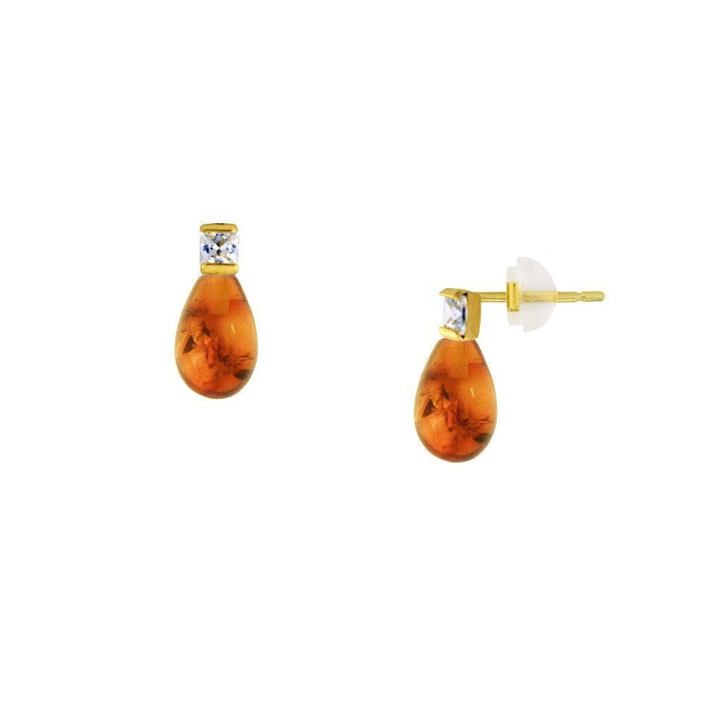 Σκουλαρίκια με Κεχριμπάρι σε χρυσή βάση Κ14 - M123217AB