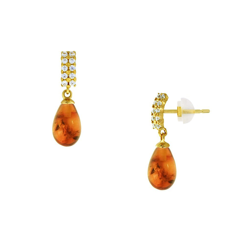 Σκουλαρίκια σε Κ14 χρυσή βάση και Κεχριμπάρι - M123674AB