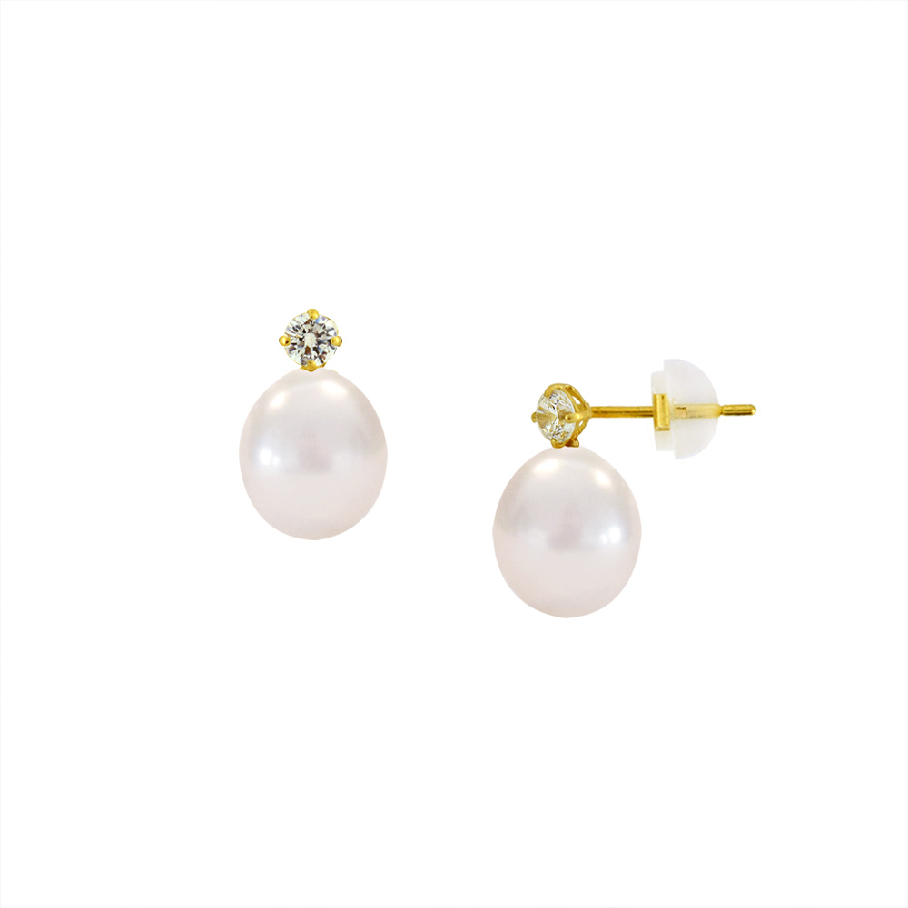 Σκουλαρίκια με λευκά μαργαριτάρια και ζιργκόν σε χρυσή βάση Κ14 - G122693