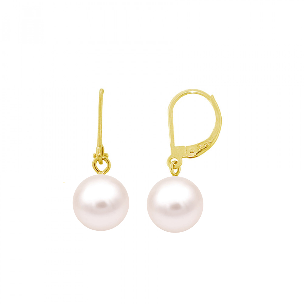 • Ένα φανταστικό ζευγάρι κρεμαστά σκουλαρίκια με 2 εντυπωσιακά λευκά μαργαριτάρια QTV Akoya Pearl, άριστης ποιότητας σε σχήμα Round (στρογγυλά), διαμέτρου 7,5 - 8,0 χιλιοστών σε χρυσή βάση 14 καρατίων.
