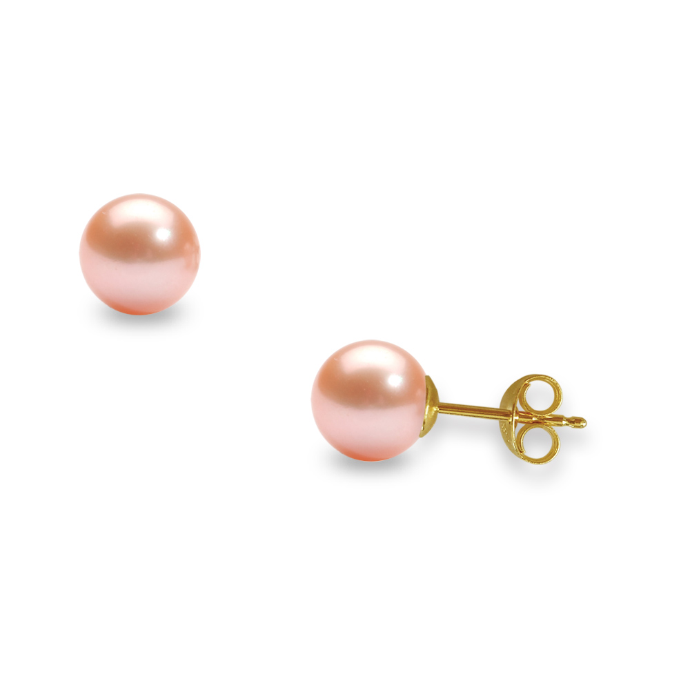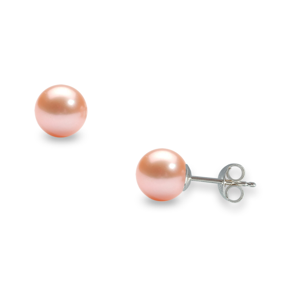• Ένα υπέροχο ζευγάρι σκουλαρίκια με σομόν μαργαριτάρια QTV Akoya Pearl, άριστης ποιότητας σε σχήμα Round (στρογγυλά), διαμέτρου 7,5 - 8 χιλιοστών.