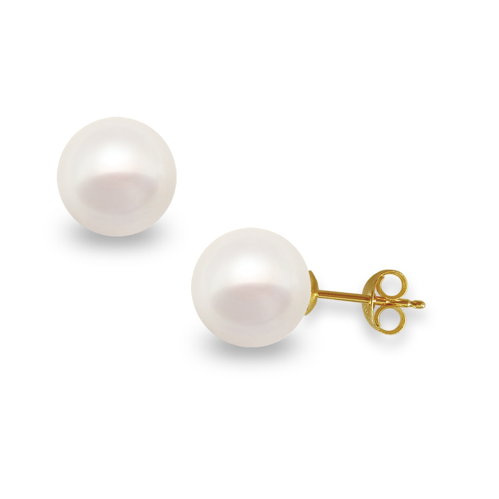 • Ένα υπέροχο ζευγάρι σκουλαρίκια με λευκά μαργαριτάρια QTV Akoya Pearl, άριστης ποιότητας σε σχήμα Round (στρογγυλά), διαμέτρου 10 - 10,5 χιλιοστών σε χρυσή βάση από 14 καρατίων.