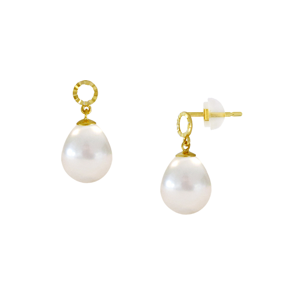 • Ένα φανταστικό ζευγάρι σκουλαρίκια με 2 εντυπωσιακά λευκά μαργαριτάρια Fresh Water Pearl, άριστης ποιότητας σε σχήμα Drop (σταγόνα), διαμέτρου 8,5 x 11,0 χιλιοστών.