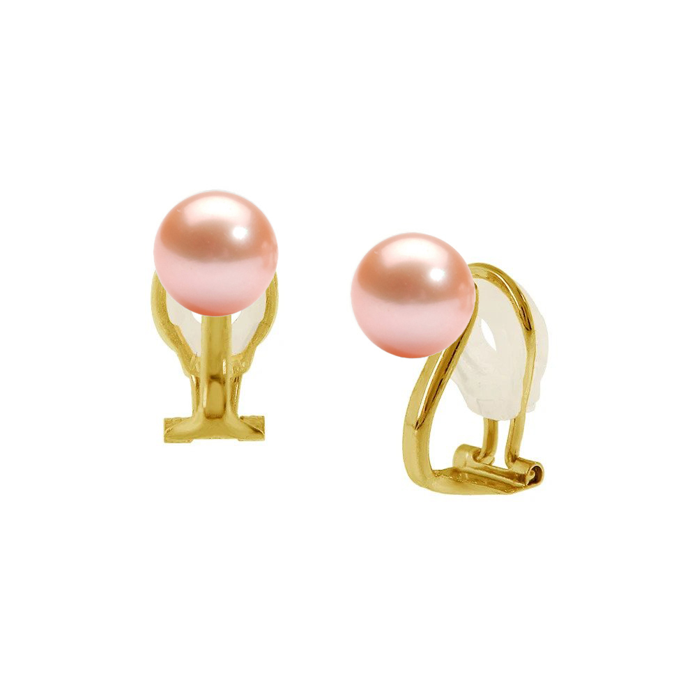 • Ένα φανταστικό ζευγάρι σκουλαρίκια με 2 εντυπωσιακά σομόν μαργαριτάρια QTV Akoya Pearl, άριστης ποιότητας σε σχήμα Round (στρογγυλά), διαμέτρου 7,5 - 8 χιλιοστών σε χρυσή βάση 14 καρατίων με κλιπ.
