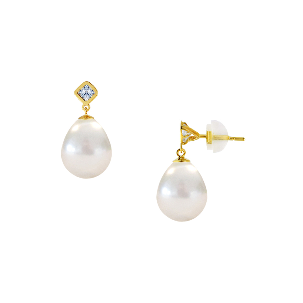• Ένα φανταστικό ζευγάρι σκουλαρίκια με 2 εντυπωσιακά λευκά μαργαριτάρια Fresh Water Pearl σε σχήμα Drop (σταγόνα), διαμέτρου 8,5 x 11 χιλιοστών.