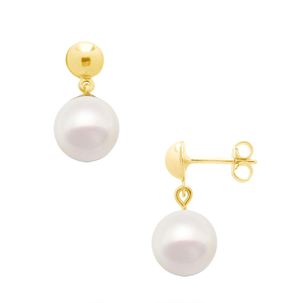 Σκουλαρίκια σε Κ14 χρυσή βάση με λευκά μαργαριτάρια - F124107Q