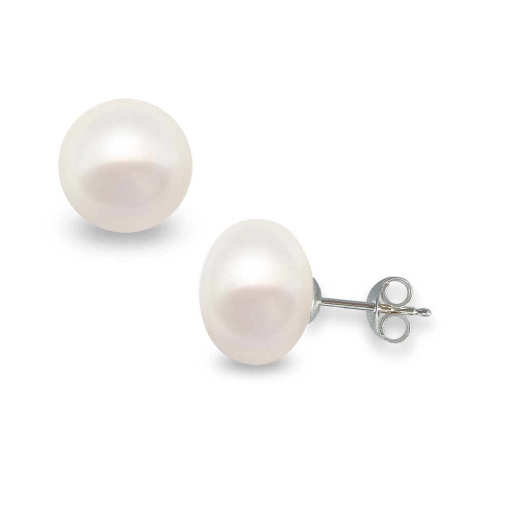 • Ένα υπέροχο ζευγάρι σκουλαρίκια με λευκά μαργαριτάρια Fresh Water Pearl, άριστης ποιότητας σε σχήμα Button (κουμπί), διαμέτρου 13 - 14 χιλιοστών.