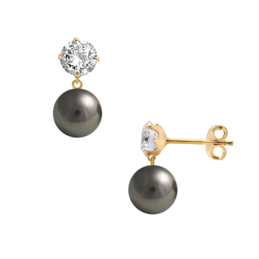 Σκουλαρίκια με μαύρα μαργαριτάρια και ζιργκόν σε χρυσή βάση Κ14 - S125203B