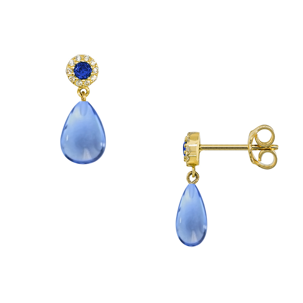 Σκουλαρίκια με Κ14 χρυσή βάση με Blue Topaz και ζιργκόν - F124285BB